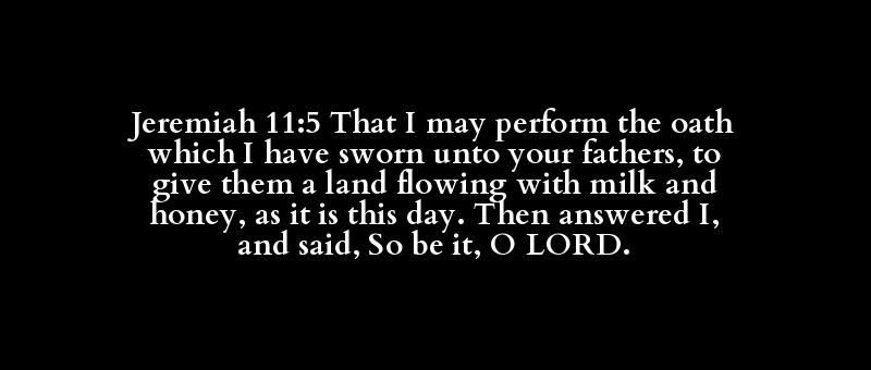 Jeremiah 11:5 That I may perform the oath which I have sworn unto your fathers, to give them a land flowing with milk and honey, as it is this day. Then answered I, and said, So be it, O LORD.