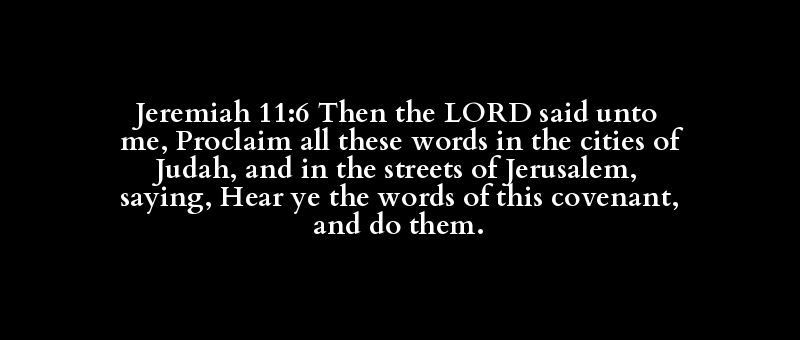 Jeremiah 11:6 Then the LORD said unto me, Proclaim all these words in the cities of Judah, and in the streets of Jerusalem, saying, Hear ye the words of this covenant, and do them.