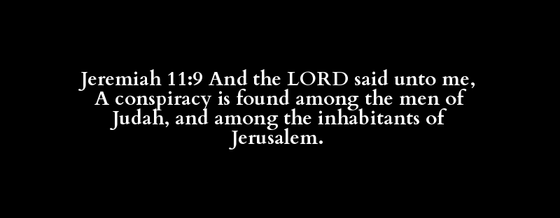 Jeremiah 11:9 And the LORD said unto me, A conspiracy is found among the men of Judah, and among the inhabitants of Jerusalem.