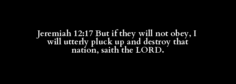 Jeremiah 12:17 But if they will not obey, I will utterly pluck up and destroy that nation, saith the LORD.