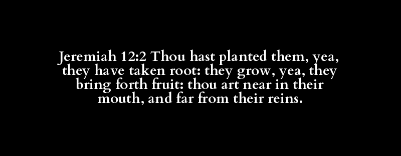 Jeremiah 12:2 Thou hast planted them, yea, they have taken root: they grow, yea, they bring forth fruit: thou art near in their mouth, and far from their reins.
