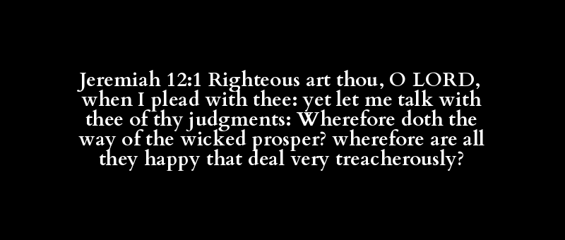 Jeremiah 12:1 Righteous art thou, O LORD, when I plead with thee: yet let me talk with thee of thy judgments: Wherefore doth the way of the wicked prosper? wherefore are all they happy that deal very treacherously?