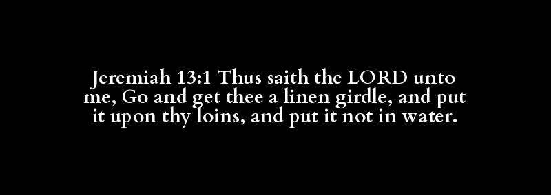 Jeremiah 13:1 Thus saith the LORD unto me, Go and get thee a linen girdle, and put it upon thy loins, and put it not in water.