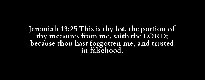 Jeremiah 13:25 This is thy lot, the portion of thy measures from me, saith the LORD; because thou hast forgotten me, and trusted in falsehood.