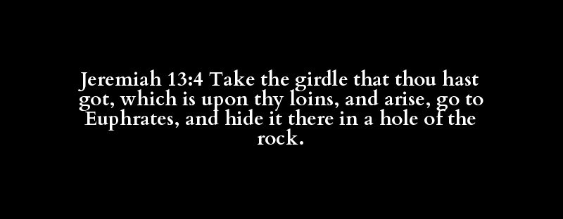 Jeremiah 13:4 Take the girdle that thou hast got, which is upon thy loins, and arise, go to Euphrates, and hide it there in a hole of the rock.