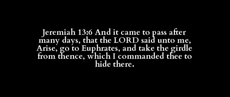 Jeremiah 13:6 And it came to pass after many days, that the LORD said unto me, Arise, go to Euphrates, and take the girdle from thence, which I commanded thee to hide there.