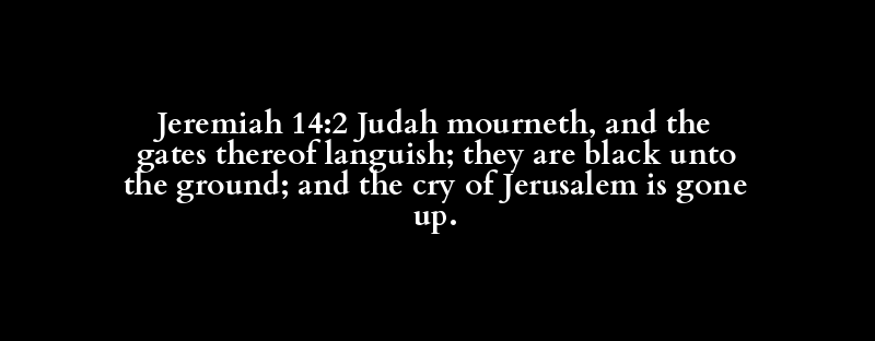 Jeremiah 14:2 Judah mourneth, and the gates thereof languish; they are black unto the ground; and the cry of Jerusalem is gone up.
