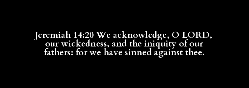 Jeremiah 14:20 We acknowledge, O LORD, our wickedness, and the iniquity of our fathers: for we have sinned against thee.