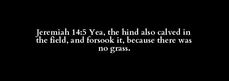 Jeremiah 14:5 Yea, the hind also calved in the field, and forsook it, because there was no grass.
