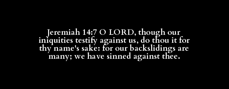 Jeremiah 14:7 O LORD, though our iniquities testify against us, do thou it for thy name's sake: for our backslidings are many; we have sinned against thee.