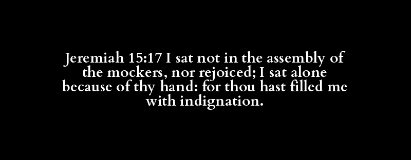 Jeremiah 15:17 I sat not in the assembly of the mockers, nor rejoiced; I sat alone because of thy hand: for thou hast filled me with indignation.
