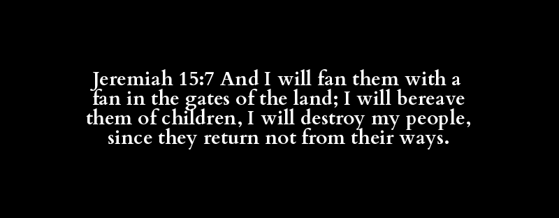 Jeremiah 15:7 And I will fan them with a fan in the gates of the land; I will bereave them of children, I will destroy my people, since they return not from their ways.