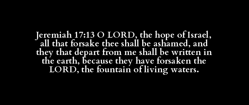 Jeremiah 17:13 O LORD, the hope of Israel, all that forsake thee shall be ashamed, and they that depart from me shall be written in the earth, because they have forsaken the LORD, the fountain of living waters.