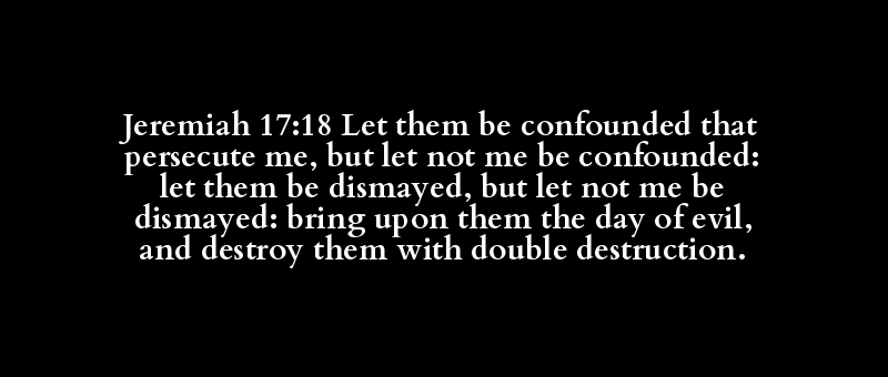 Jeremiah 17:18 Let them be confounded that persecute me, but let not me be confounded: let them be dismayed, but let not me be dismayed: bring upon them the day of evil, and destroy them with double destruction.