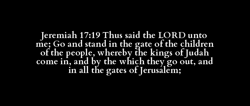 Jeremiah 17:19 Thus said the LORD unto me; Go and stand in the gate of the children of the people, whereby the kings of Judah come in, and by the which they go out, and in all the gates of Jerusalem;