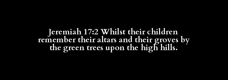 Jeremiah 17:2 Whilst their children remember their altars and their groves by the green trees upon the high hills.