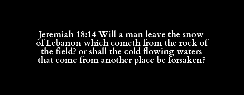 Jeremiah 18:14 Will a man leave the snow of Lebanon which cometh from the rock of the field? or shall the cold flowing waters that come from another place be forsaken?