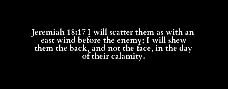 Jeremiah 18:17 I will scatter them as with an east wind before the enemy; I will shew them the back, and not the face, in the day of their calamity.
