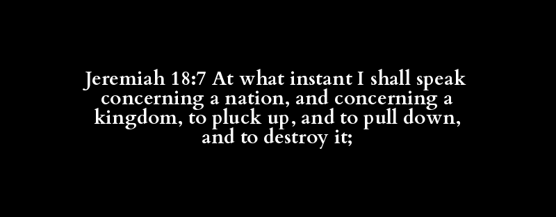 Jeremiah 18:7 At what instant I shall speak concerning a nation, and concerning a kingdom, to pluck up, and to pull down, and to destroy it;