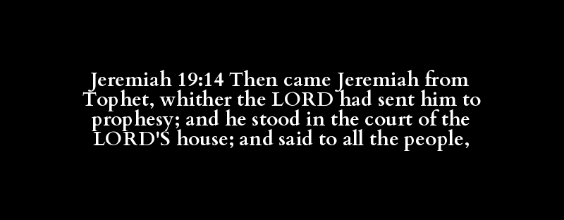 Jeremiah 19:14 Then came Jeremiah from Tophet, whither the LORD had sent him to prophesy; and he stood in the court of the LORD'S house; and said to all the people,