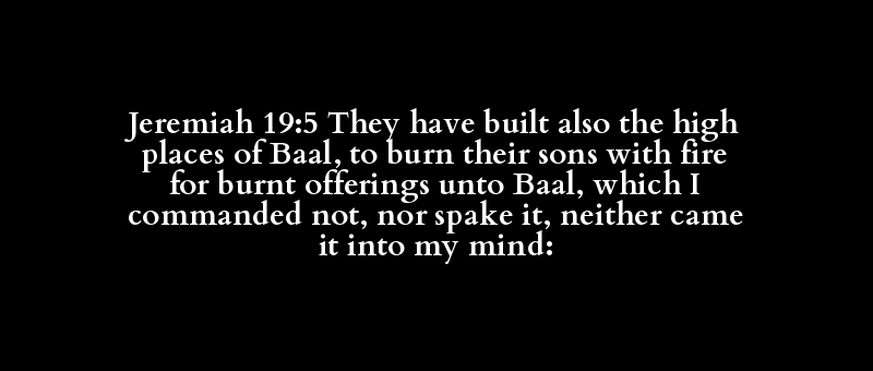 Jeremiah 19:5 They have built also the high places of Baal, to burn their sons with fire for burnt offerings unto Baal, which I commanded not, nor spake it, neither came it into my mind: