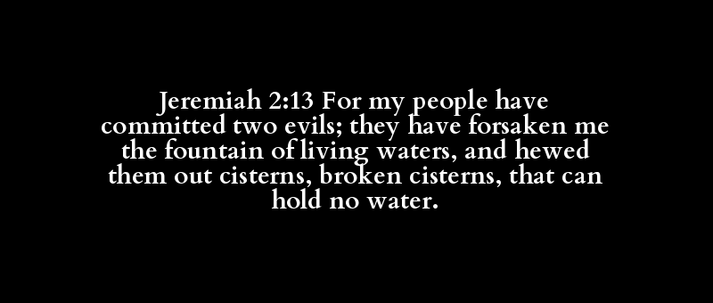 Jeremiah 2:13 For my people have committed two evils; they have forsaken me the fountain of living waters, and hewed them out cisterns, broken cisterns, that can hold no water.