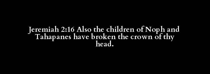 Jeremiah 2:16 Also the children of Noph and Tahapanes have broken the crown of thy head.