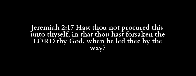 Jeremiah 2:17 Hast thou not procured this unto thyself, in that thou hast forsaken the LORD thy God, when he led thee by the way?
