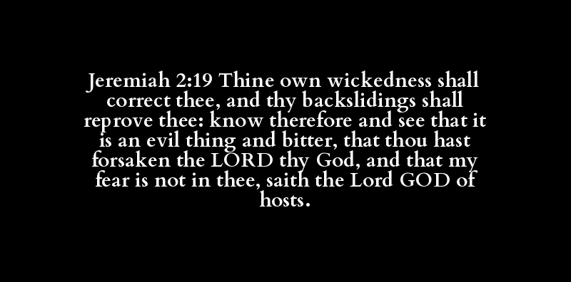 Jeremiah 2:19 Thine own wickedness shall correct thee, and thy backslidings shall reprove thee: know therefore and see that it is an evil thing and bitter, that thou hast forsaken the LORD thy God, and that my fear is not in thee, saith the Lord GOD of hosts.