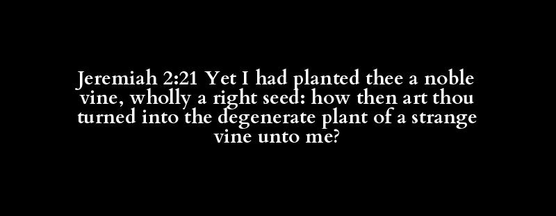 Jeremiah 2:21 Yet I had planted thee a noble vine, wholly a right seed: how then art thou turned into the degenerate plant of a strange vine unto me?