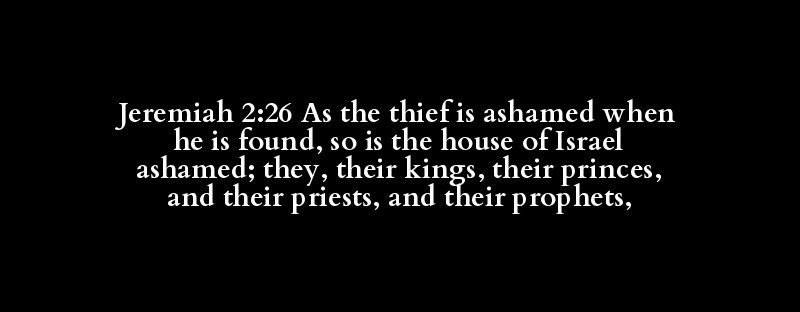 Jeremiah 2:26 As the thief is ashamed when he is found, so is the house of Israel ashamed; they, their kings, their princes, and their priests, and their prophets,