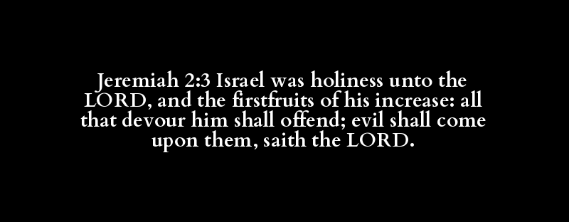 Jeremiah 2:3 Israel was holiness unto the LORD, and the firstfruits of his increase: all that devour him shall offend; evil shall come upon them, saith the LORD.