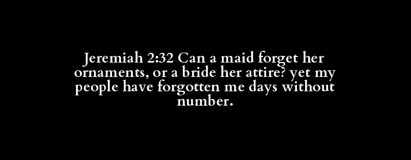 Jeremiah 2:32 Can a maid forget her ornaments, or a bride her attire? yet my people have forgotten me days without number.