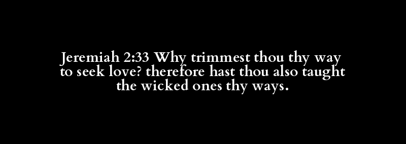 Jeremiah 2:33 Why trimmest thou thy way to seek love? therefore hast thou also taught the wicked ones thy ways.