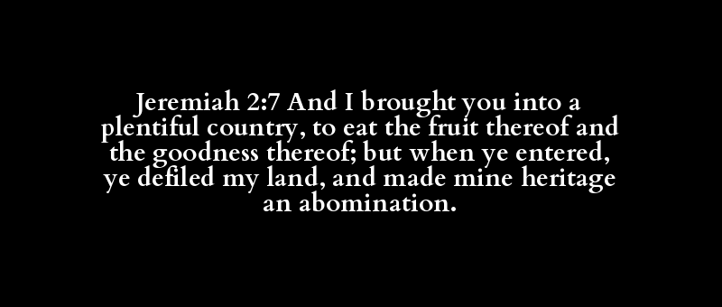 Jeremiah 2:7 And I brought you into a plentiful country, to eat the fruit thereof and the goodness thereof; but when ye entered, ye defiled my land, and made mine heritage an abomination.