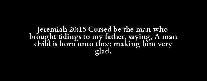 Jeremiah 20:15 Cursed be the man who brought tidings to my father, saying, A man child is born unto thee; making him very glad.