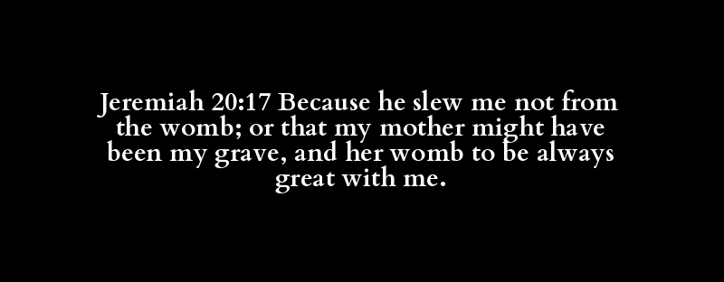 Jeremiah 20:17 Because he slew me not from the womb; or that my mother might have been my grave, and her womb to be always great with me.