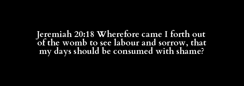 Jeremiah 20:18 Wherefore came I forth out of the womb to see labour and sorrow, that my days should be consumed with shame?