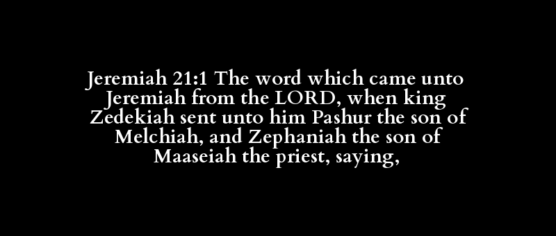 Jeremiah 21:1 The word which came unto Jeremiah from the LORD, when king Zedekiah sent unto him Pashur the son of Melchiah, and Zephaniah the son of Maaseiah the priest, saying,