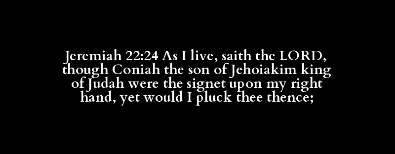 Jeremiah 22:24 As I live, saith the LORD, though Coniah the son of Jehoiakim king of Judah were the signet upon my right hand, yet would I pluck thee thence;