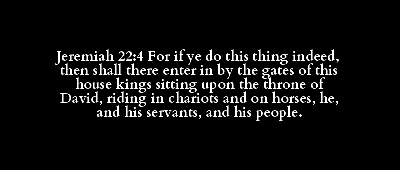 Jeremiah 22:4 For if ye do this thing indeed, then shall there enter in by the gates of this house kings sitting upon the throne of David, riding in chariots and on horses, he, and his servants, and his people.