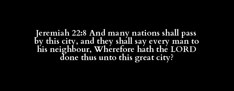Jeremiah 22:8 And many nations shall pass by this city, and they shall say every man to his neighbour, Wherefore hath the LORD done thus unto this great city?