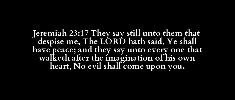 Jeremiah 23:17 They say still unto them that despise me, The LORD hath said, Ye shall have peace; and they say unto every one that walketh after the imagination of his own heart, No evil shall come upon you.