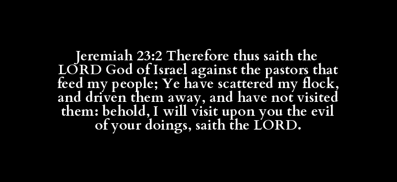 Jeremiah 23:2 Therefore thus saith the LORD God of Israel against the pastors that feed my people; Ye have scattered my flock, and driven them away, and have not visited them: behold, I will visit upon you the evil of your doings, saith the LORD.