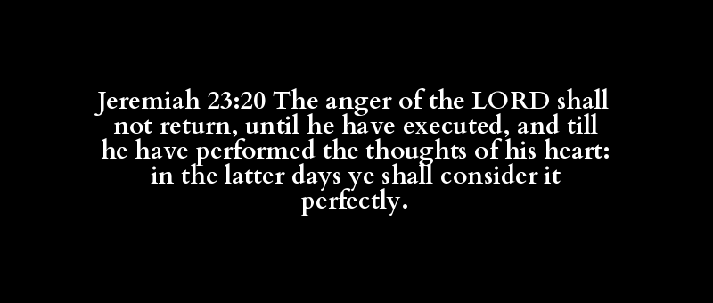 Jeremiah 23:20 The anger of the LORD shall not return, until he have executed, and till he have performed the thoughts of his heart: in the latter days ye shall consider it perfectly.