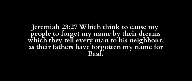 Jeremiah 23:27 Which think to cause my people to forget my name by their dreams which they tell every man to his neighbour, as their fathers have forgotten my name for Baal.