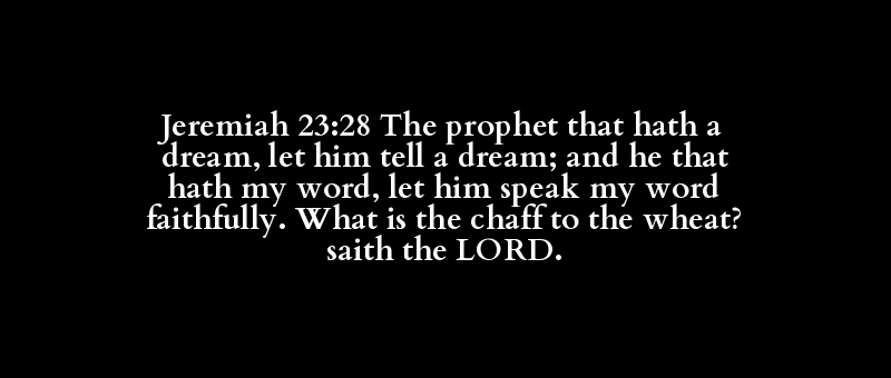 Jeremiah 23:28 The prophet that hath a dream, let him tell a dream; and he that hath my word, let him speak my word faithfully. What is the chaff to the wheat? saith the LORD.