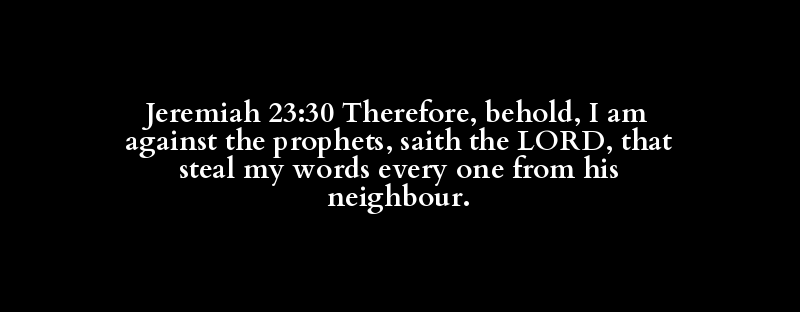 Jeremiah 23:30 Therefore, behold, I am against the prophets, saith the LORD, that steal my words every one from his neighbour.