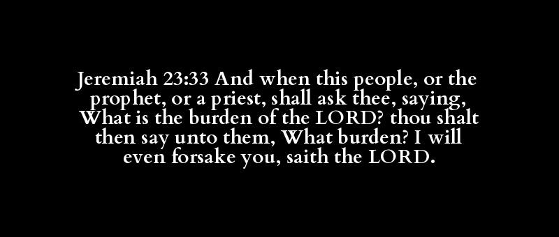 Jeremiah 23:33 And when this people, or the prophet, or a priest, shall ask thee, saying, What is the burden of the LORD? thou shalt then say unto them, What burden? I will even forsake you, saith the LORD.