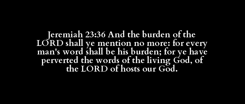 Jeremiah 23:36 And the burden of the LORD shall ye mention no more: for every man's word shall be his burden; for ye have perverted the words of the living God, of the LORD of hosts our God.